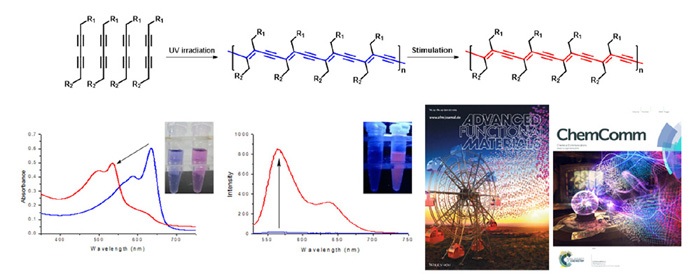 Polydiacetylenes (PDAs) have received increasing attention as smart materials owing to their unique properties. Upon addition of various stimuli, blue PDAs can undergo a colorimetric transition from blue to red along with a change from non-fluorescent to fluorescent. The optical changes can be readily detected by the naked eye and by using absorption and fluorescence spectrometers. These properties make PDAs excellent materials for use in platforms for sensing chemical or biological targets. In recent years, a number of biosensors and chemosensors based on the optical responses of polydiacetylenes have been reported.